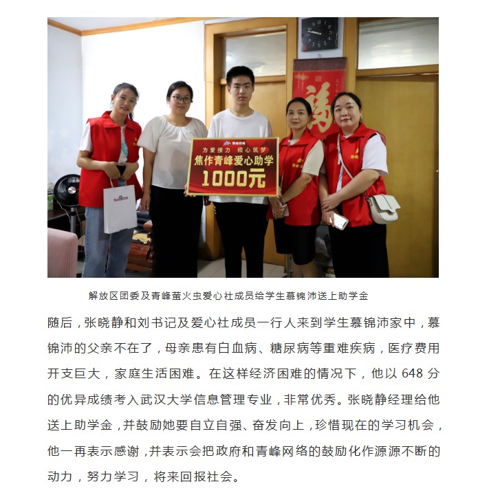 青峰助學 傾心筑夢--青峰創元集團螢火蟲愛心活動第219期