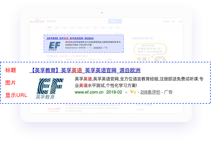 操作簡單、效果快速,支持多個顯著位置展現按點擊收費,展示免費。